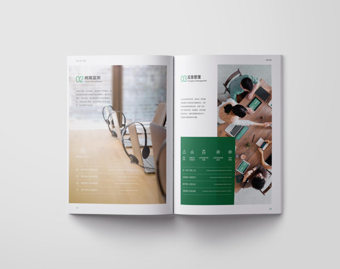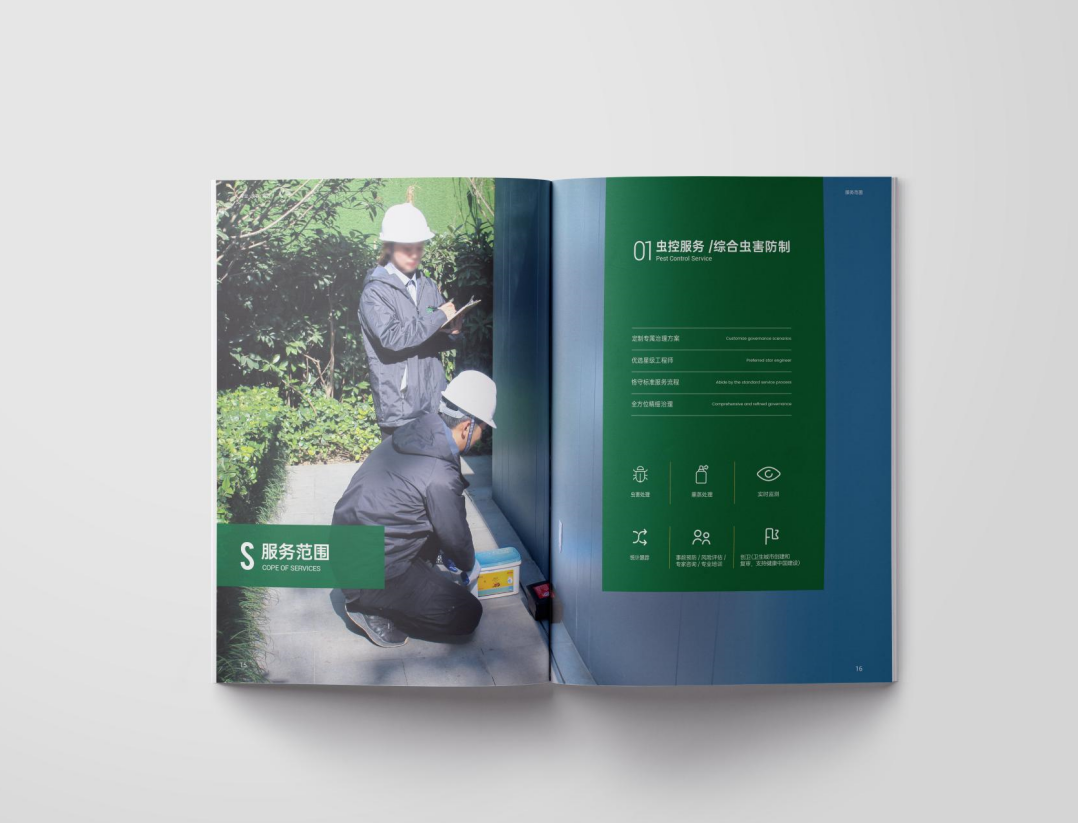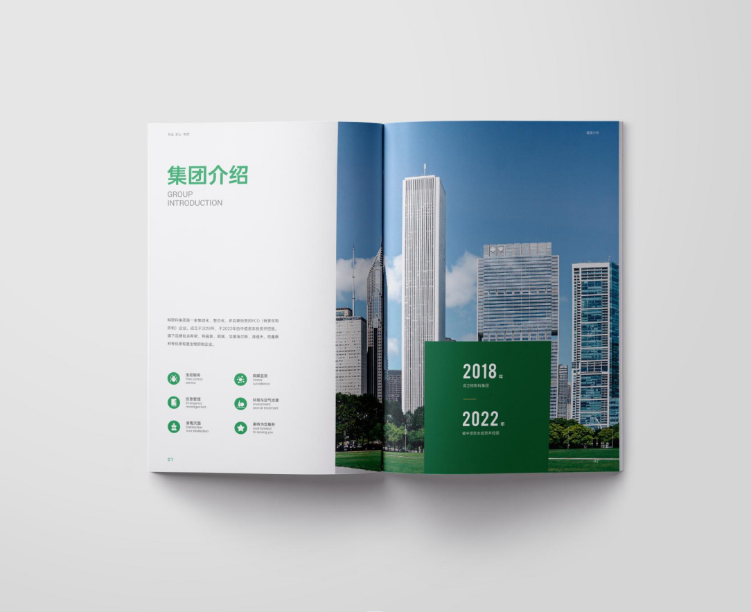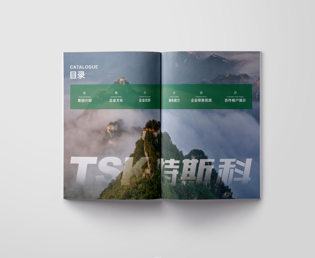 項目背景:TSK特斯科集團是一家集團化、整合化、多品牌經(jīng)營的PCO(有害生物防制)企業(yè)。致力于在蟲控服務(wù)、應(yīng)急管理、環(huán)境與空氣治理、消毒殺菌等方面為客戶提供貼心可靠的服務(wù)與安心高效的保障。服務(wù)內(nèi)容涵蓋從技術(shù)檢查和日常預(yù)防性檢查,到蟲害預(yù)防、控制凈滅工作、清除害蟲污染物、專業(yè)消毒等全過程。此外還針對不同行業(yè)的客戶需求,協(xié)助管理供應(yīng)鏈,提供包括人員培訓、蟲害風險咨詢、鑒定報告、通過內(nèi)外部審計等高附加值服務(wù)。艾的爾設(shè)計通過與企業(yè)進行深入溝通,明確企業(yè)對于畫冊設(shè)計的需求,畫冊封面內(nèi)容簡潔并突出重點,綠色的采用,與品牌vi調(diào)性一致,符合行業(yè)屬性,在內(nèi)頁的設(shè)計中,按黃金分割比例設(shè)計,標題與文字的板塊相互呼應(yīng),圖文分布疏密有致,整個版面簡潔優(yōu)雅。畫冊內(nèi)頁的顏色選用上,和封面相互呼應(yīng),以綠白等清新雅致的顏色為主。整個畫冊,設(shè)計精簡、嚴格,充分展現(xiàn)出了企業(yè)的訴求和形象。